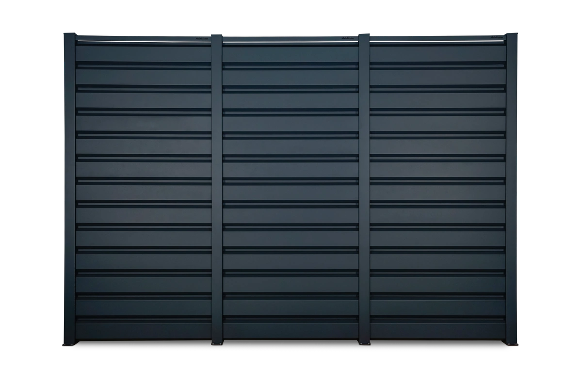 Die breite Paneelform verleiht dem Zaun eine starke Präsenz und eine markante, moderne Optik.