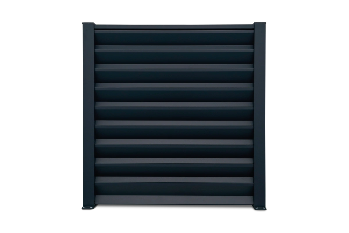 Die 13 cm breiten Lamellen und der 2 mm Luft- & Sichtspalt erzeugen ein nahezu geschlossenes Gesamtbild mit sehr feiner Linienwirkung.